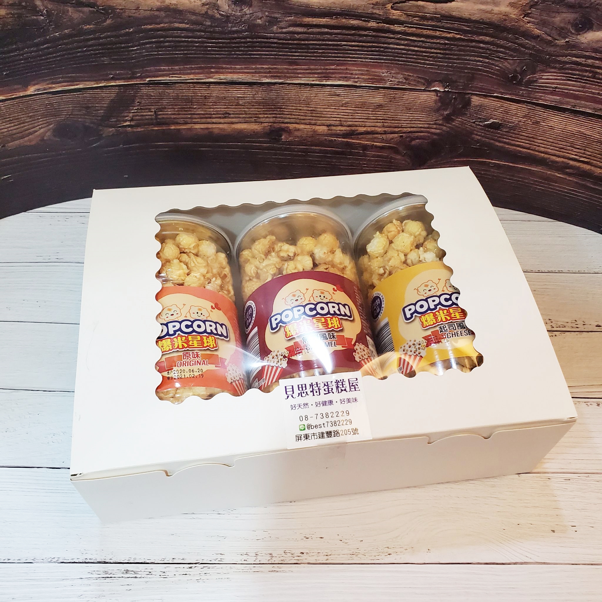 3入裝,綜合口味(原味、焦糖、起司) 每罐淨重190/g(保存期限8個月) 3入裝禮盒尺寸(32.5*25*9.5公分),附手提紙袋